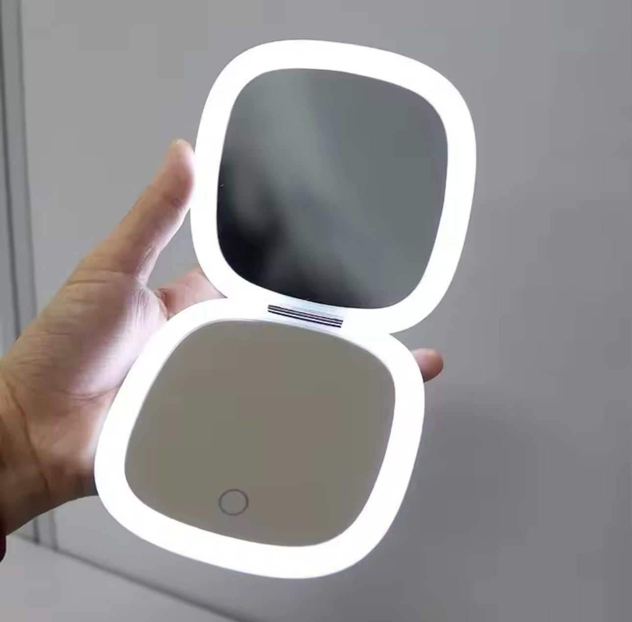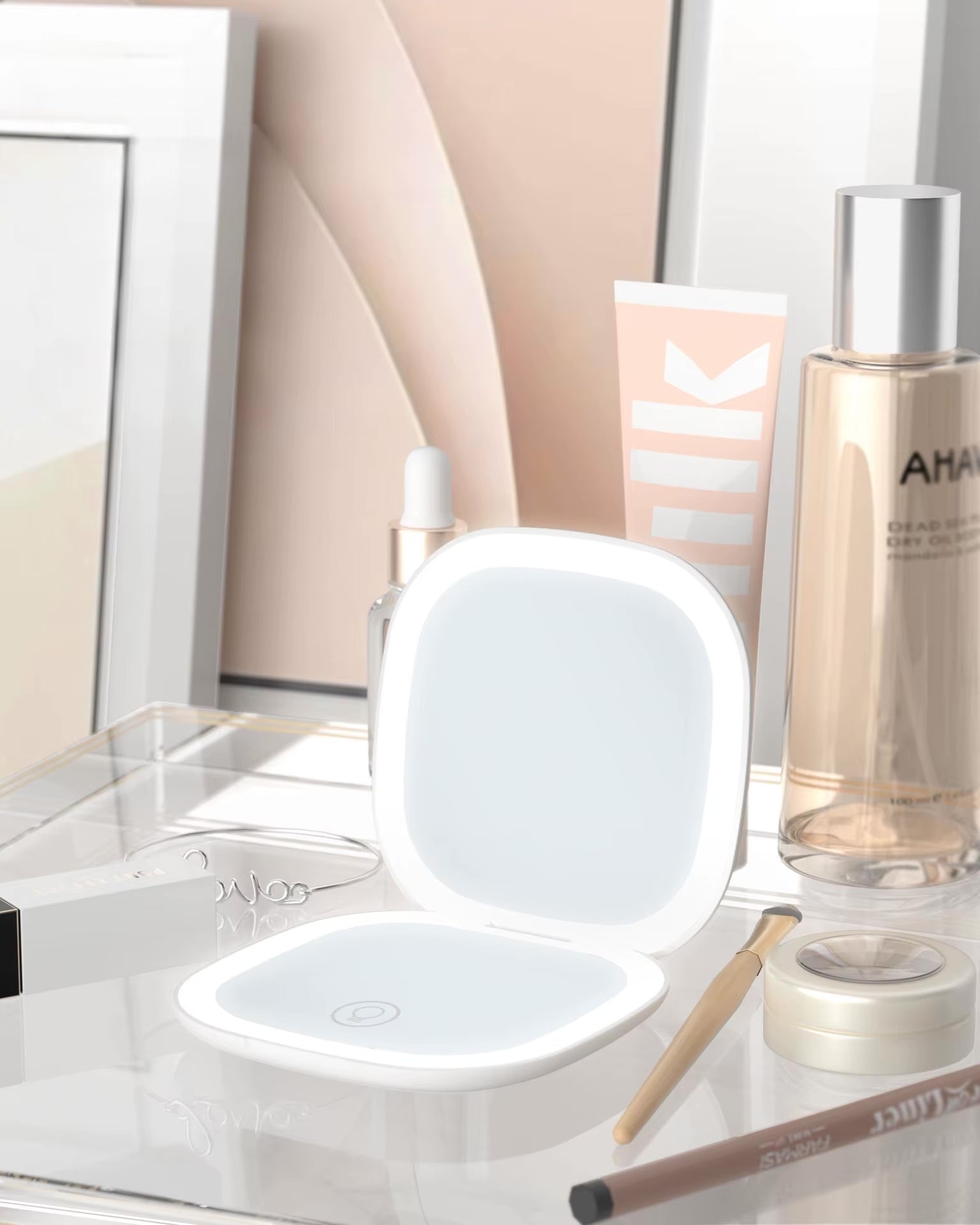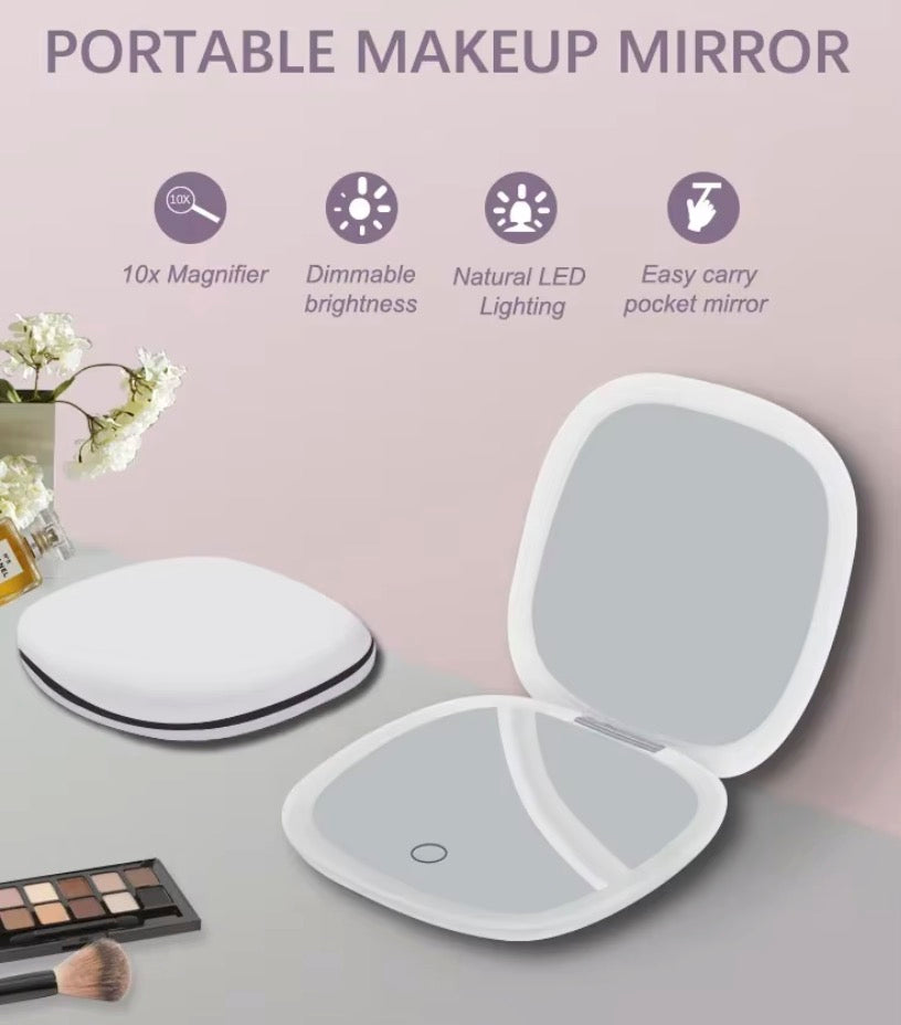 Treat yourself with this super luminous pocket mirror , the ideal ally for perfect make-up and impeccable selfies, and above all, no matter where you are!